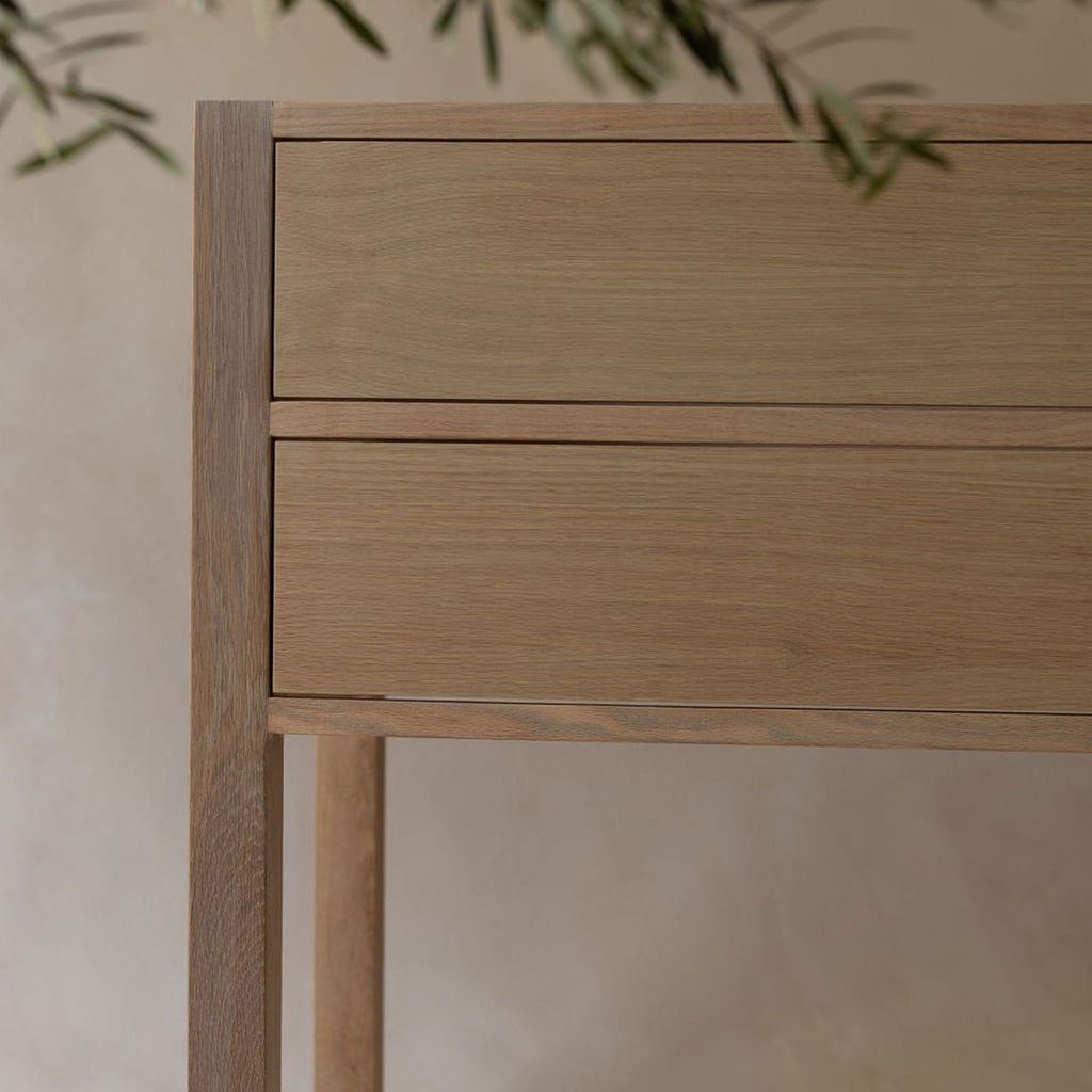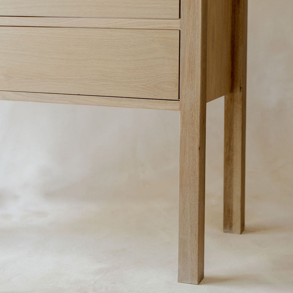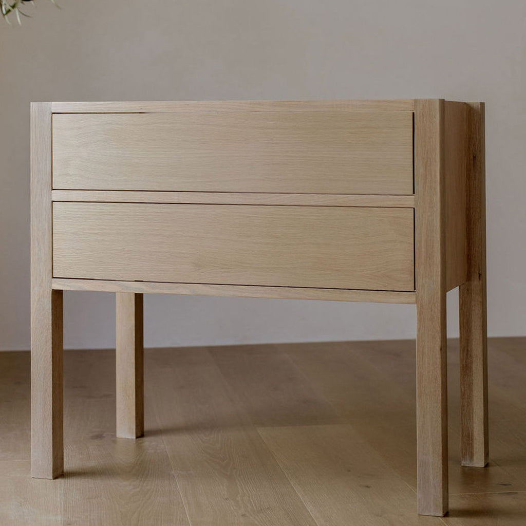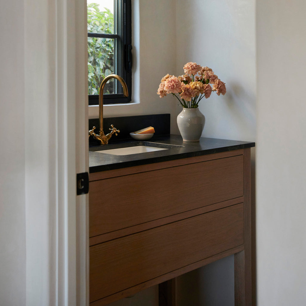 Our Parker single-sink Vanity showcases a simplistic design with a sophisticated white oak finish. Designed with you in mind, this charming, hand-made piece is ideal for your guest bath or powder room.